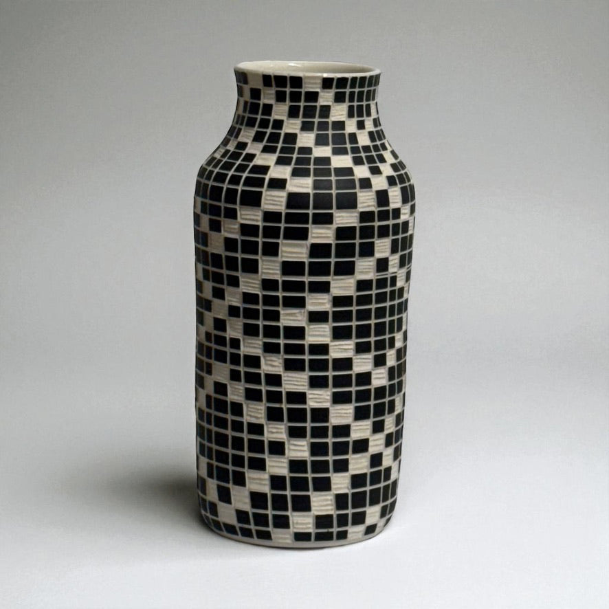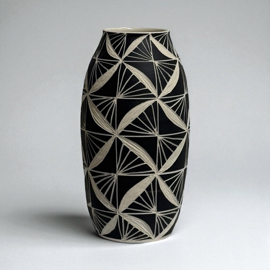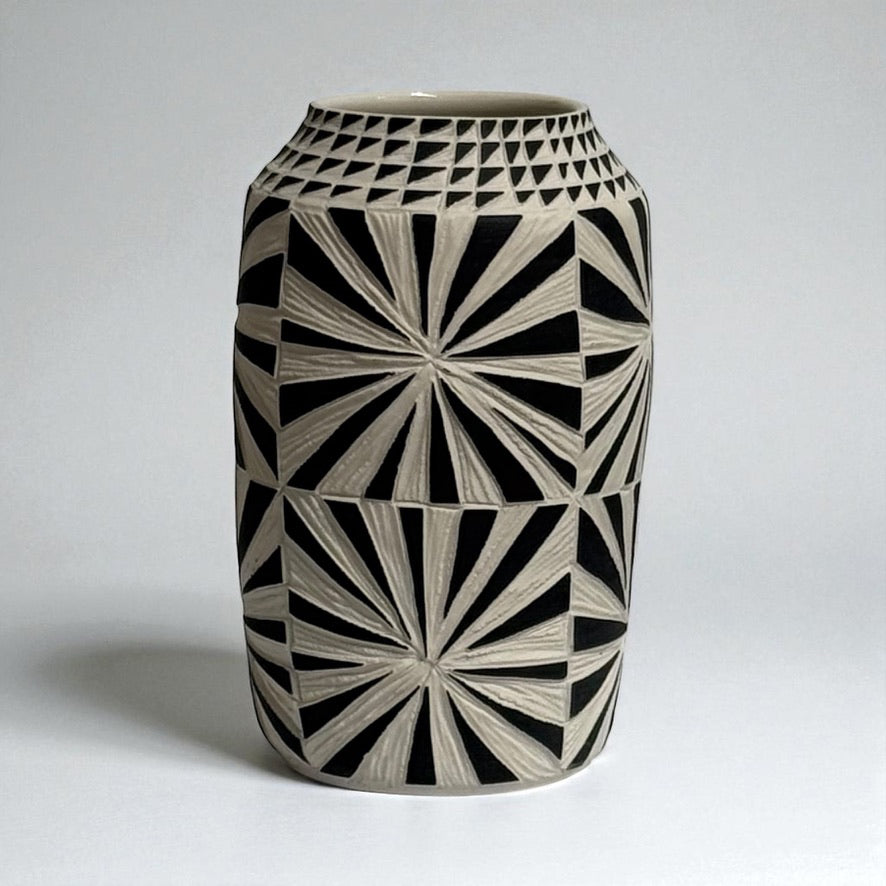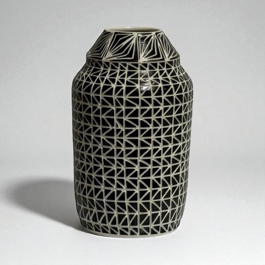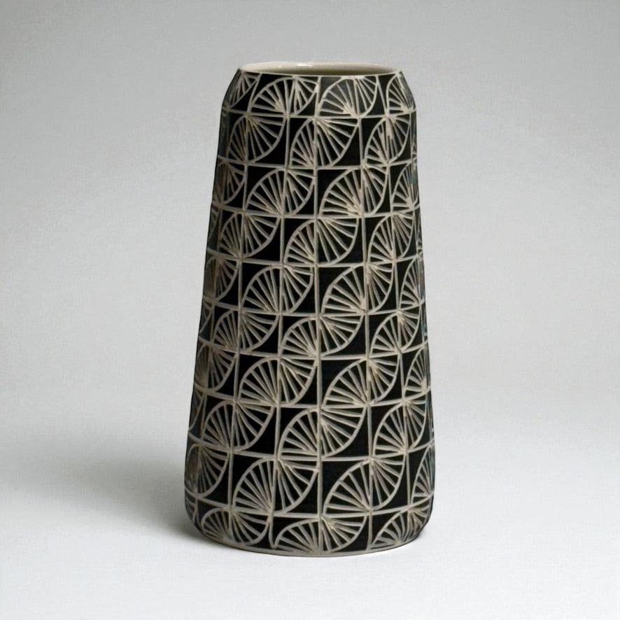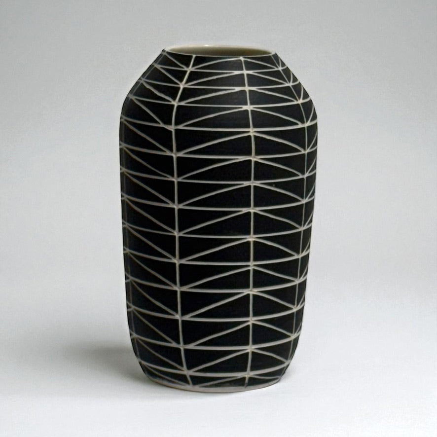 I am a full-time ceramic artist working primarily in porcelain. Most of my functional pots are decorated with carved or glazed patterns, usually black and white. I make all the work myself in my home studio in rural Lancaster County PA.