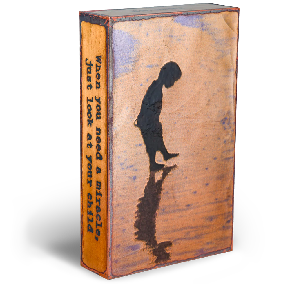 Spiritiles are molten glass on copper Houston's spiritiles capture the spirit of the enlightened moment, and share that moment of light with the world. The stories borne on their golden sides are timeless words of wit and wisdom...those AHA! moments of life. Spiritiles are hand painted on copper in finely ground glass, then fired by kiln at 1500 degrees. It's like drawing with sand, Houston says, then toasting it on a very hot fire.