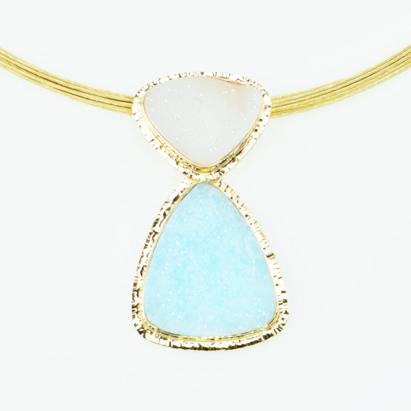 Hemimorphite with a drusy surface sparkles like a blue iceberg. White Drusy Quartz sits atop.