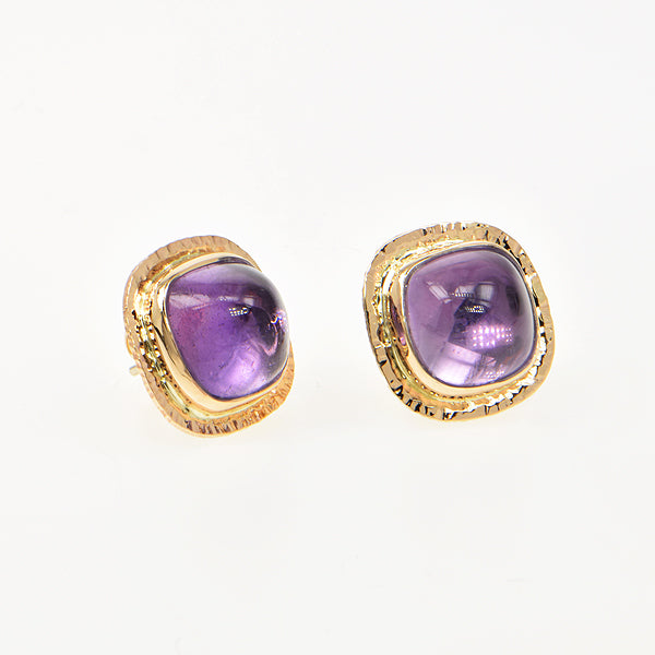 Baksa NotesAmethyst Cabochons in a luminous lavender color. Bezel settings, with hammered texture frames.