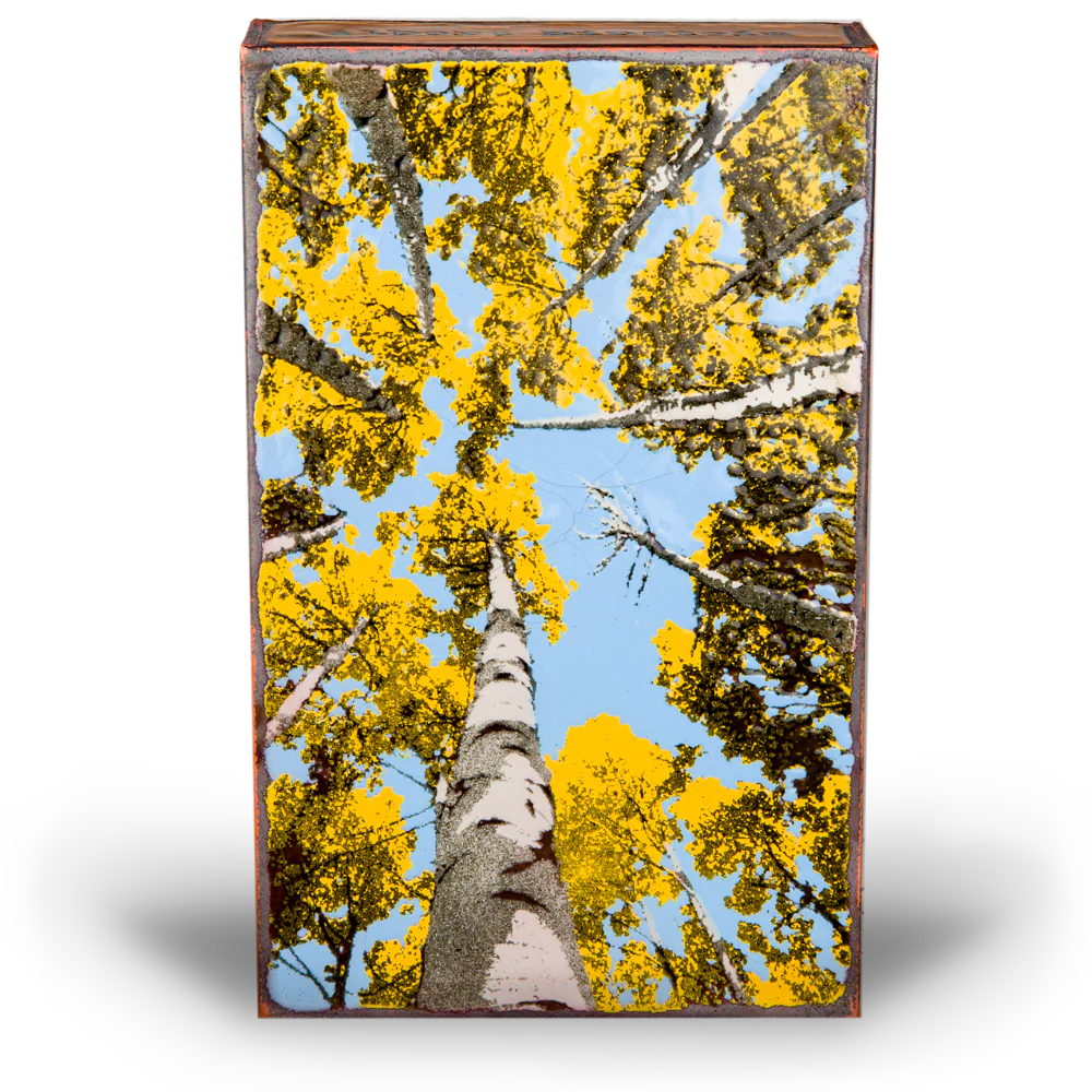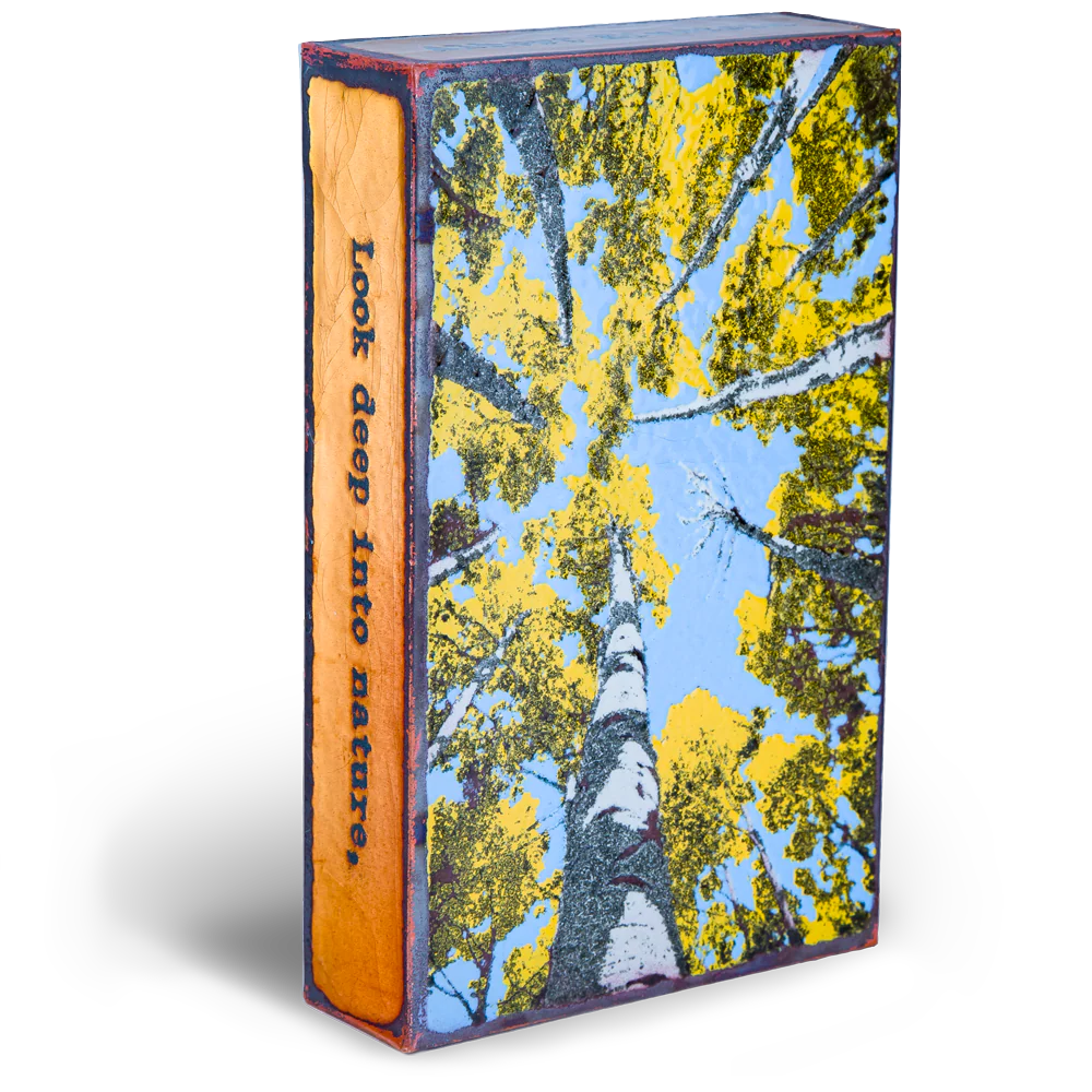 Houston's spiritiles capture the spirit of the enlightened moment, and share that moment of light with the world. The stories borne on their golden sides are timeless words of wit and wisdom...those AHA! moments of life. Spiritiles are hand painted on copper in finely ground glass, then fired by kiln at 1500 degrees. It's like drawing with sand, Houston says, then toasting it on a very hot fire.