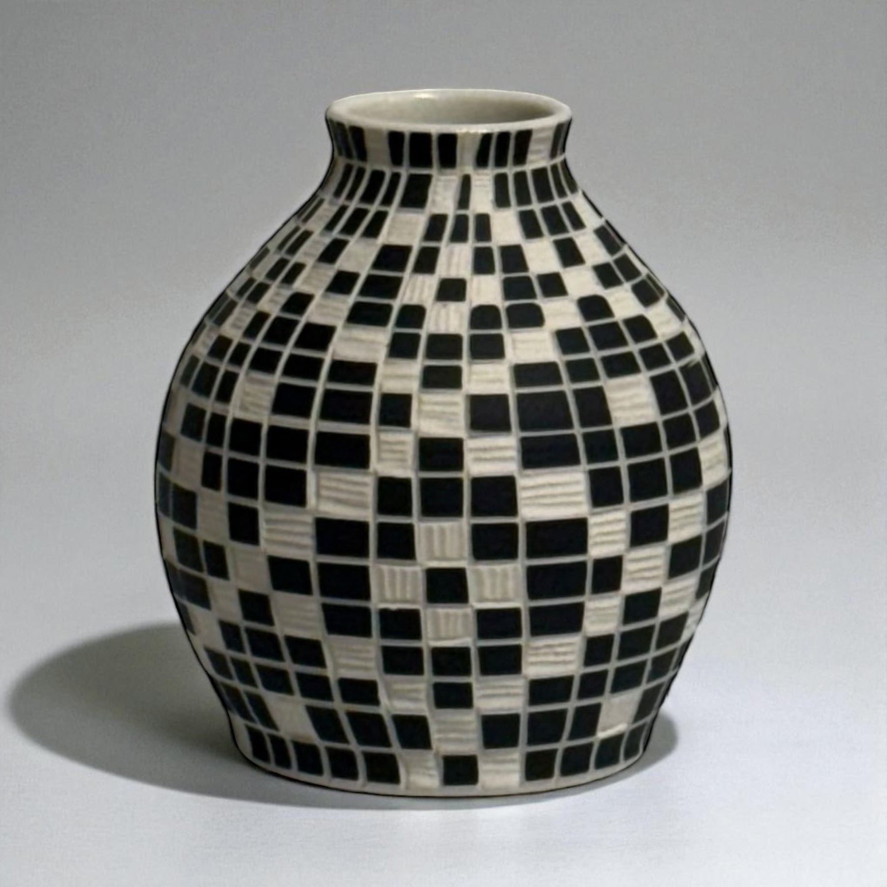 Most of my functional pots are decorated with carved or glazed patterns, usually black and white.