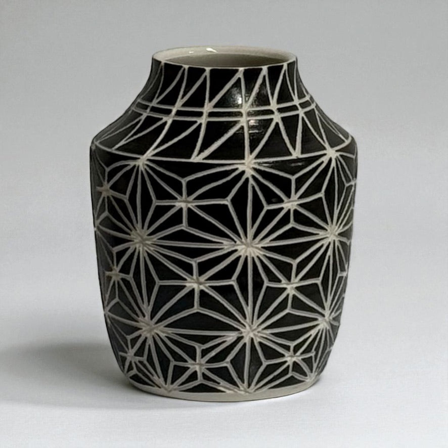 Most of my functional pots are decorated with carved or glazed patterns, usually black and white.