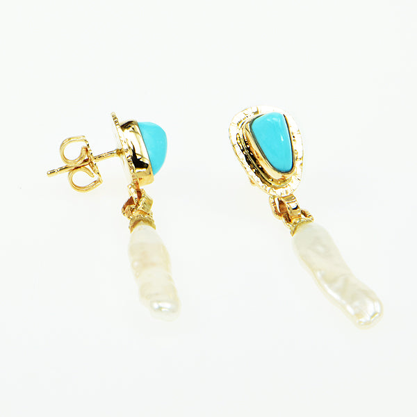 Sleeping Beauty Turquoise Cabochon and Freshwater Pearl Earrings
