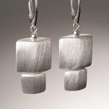A study in shape, structure and texture. Deeply brushed sterling silver pillows (13mm + 9mm) are set on polished sterling silver French lever backs that securely click closed. With sterling silver accents. Lightweight and beautifully handcrafted in New England.