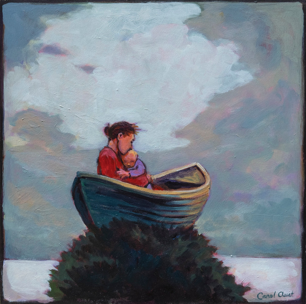 Carol Aust works in acrylic on canvas and wood panels from her studio in Oakland, California. Her figurative paintings are emotionally-charged narrative fragments infused with mysterious tension and secrecy. She often places her figures in precarious environments where anything could happen.