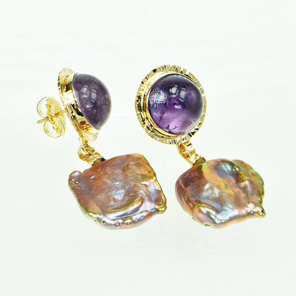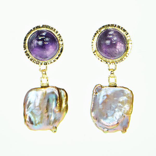 Amethyst Cabochon and Keshi Pearl Earrings