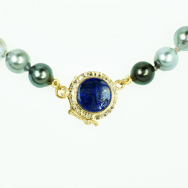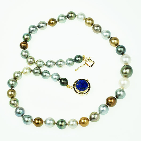 Multicolor South Sea Pearls with Lapis Cabochon Clasp Necklace