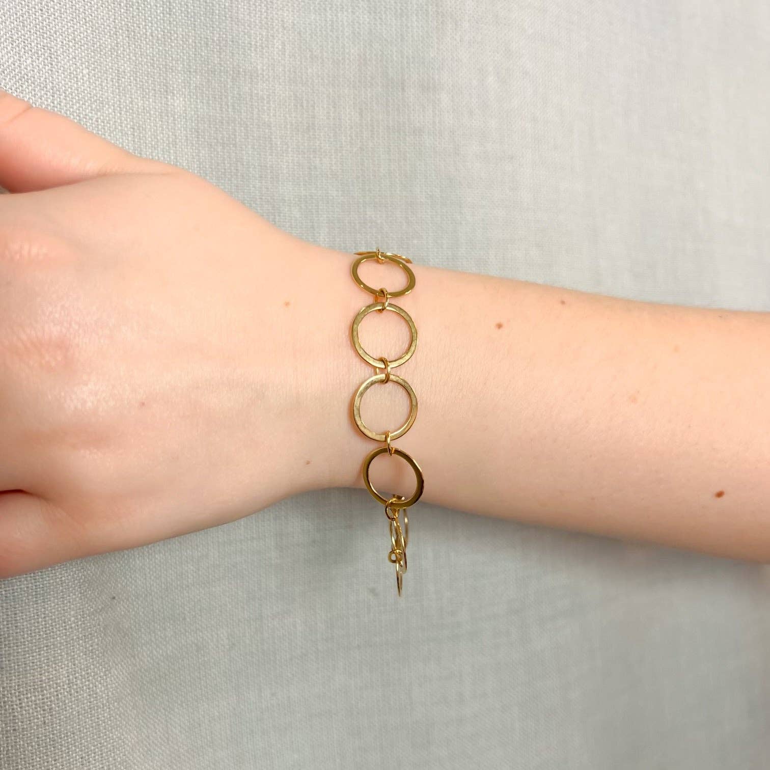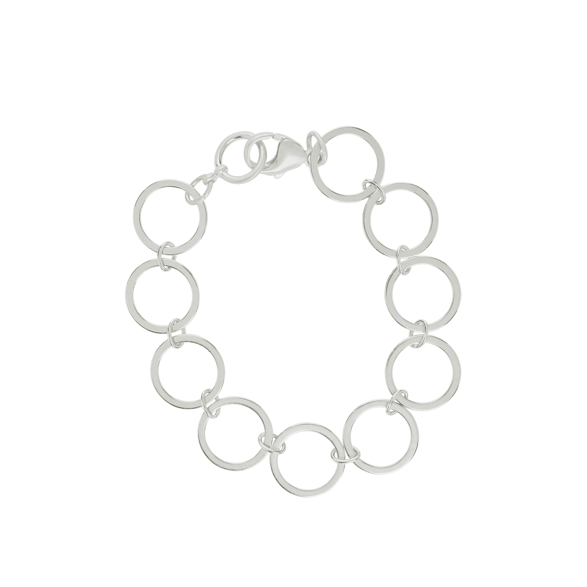 Open circle chain bracelet in silver. Bracelets total length is 7 1/2". 179-23sb. Handmade in Oakland, CA. • 7 1/2” long • sterling silver.