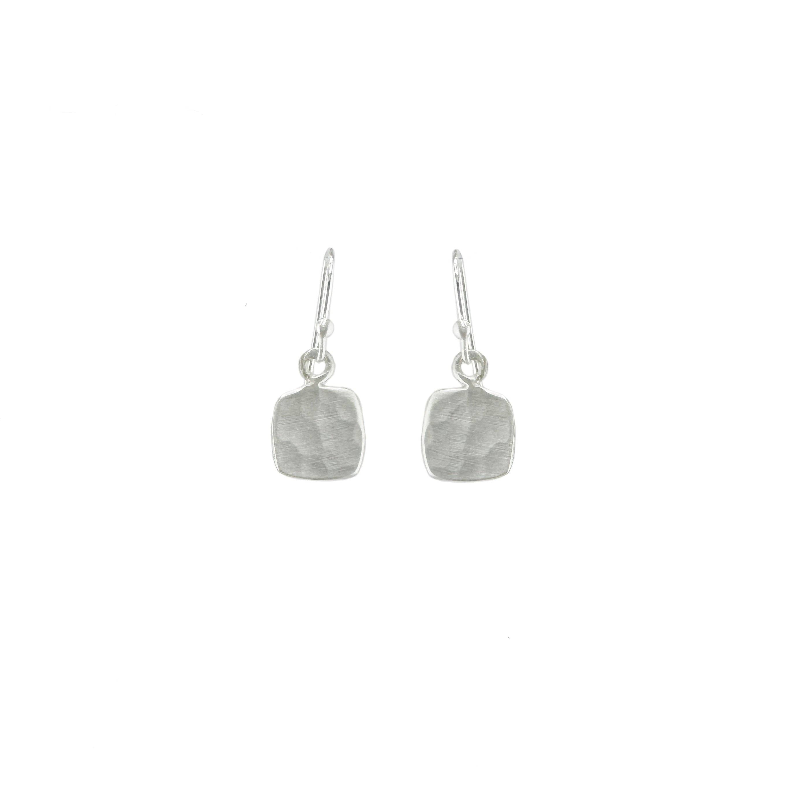 Small hammered square. silver earrings hang approx 7/8". 3/8" wide. 180-30se Handmade in Oakland, CA. • hangs 7/8” • 3/8"wide • sterling silver.