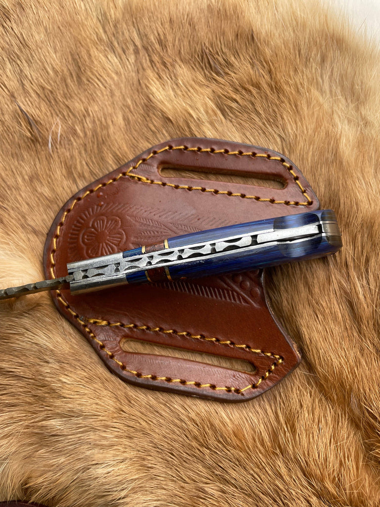 Pocket Knife Blue Diamond Wood 6.5'' Damascus Steel Knife