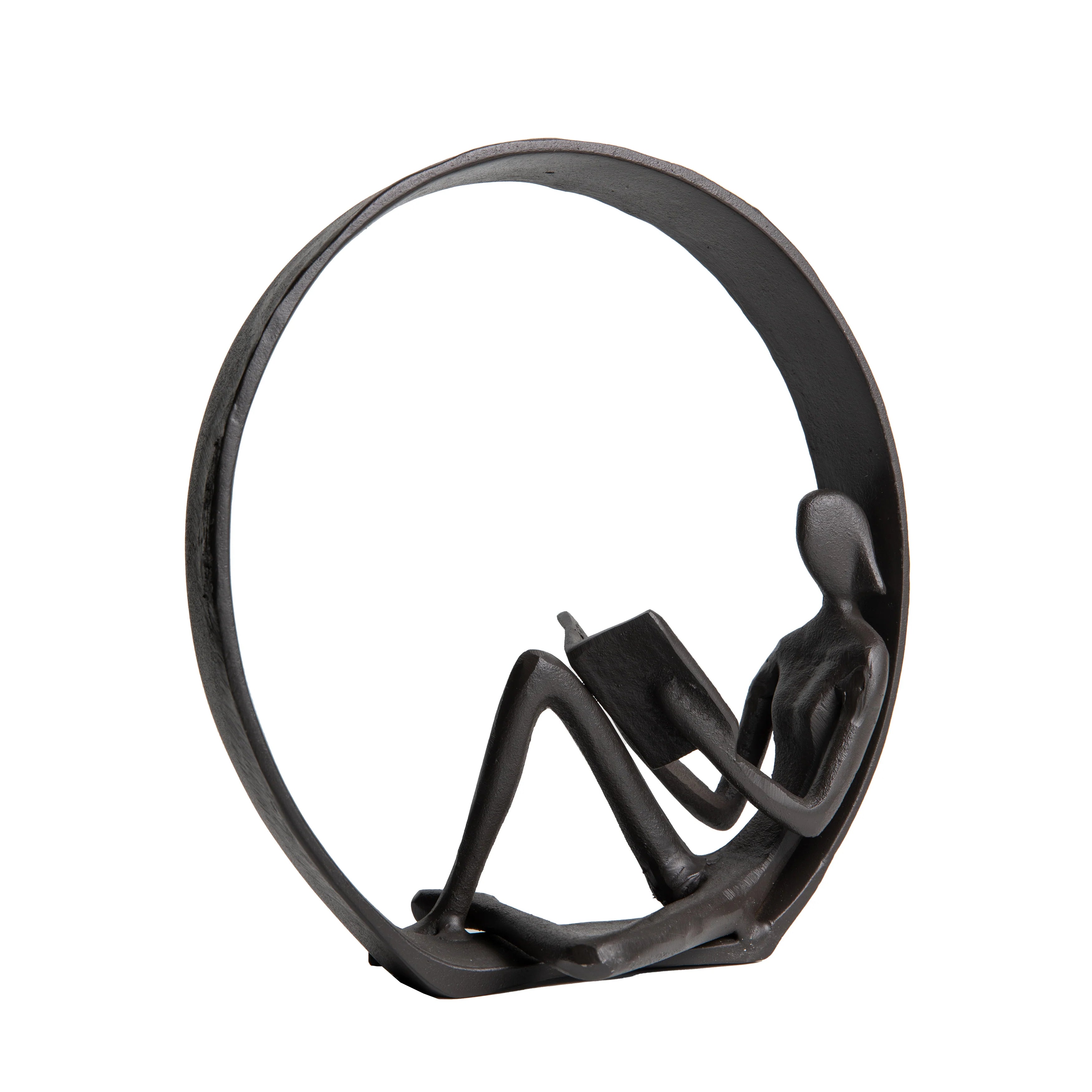 The Danya B. Encircled Reader Iron Sculpture is the perfect addition to any avid book collector, voracious reader, or book loving family's home office or library. This beautifully abstract statue depicts a slender figure reclining slightly in an iron circle while reading serenely. The abstract nature of this statue allows its viewers to identify with a love of reading in both children and adults alike. Although the statue inspires a sense of elegance in its form and construction, its abstract and playful design also adds some whimsical flair to any room you choose to place it in. This sculpture sets an old-fashioned, warm tone with its tarnish-proof dark brown sheen on the iron construction. Its classic appearance is sure to embellish any home office or library. Each of these unique sculptures is carefully made by hand using a sand casting method. Each sculpture weighs 2.51 pounds and measures 6.5 inches wide, 3.5 inches deep, and 7.5 inches high. With this portable size and durable weight, this small sculpture can easily adorn most tables, shelves, or desks. Simply place the statue anywhere you please, and you're all set for a beautiful display. This simply elegant statue is great for any room in the house where books are kept, like the family reading room, office, bedroom, nursery, or reading nook. From its intricate detailing to its beautiful finish, this iron reader sculpture is a great addition to any home, office, or library to add a new bit of class and old-fashioned sophistication wherever you decide to place it. This Encircled Reader Sculpture is available as single Male, single Female, or Set of both Male and Female readers options to best suit your family and décor