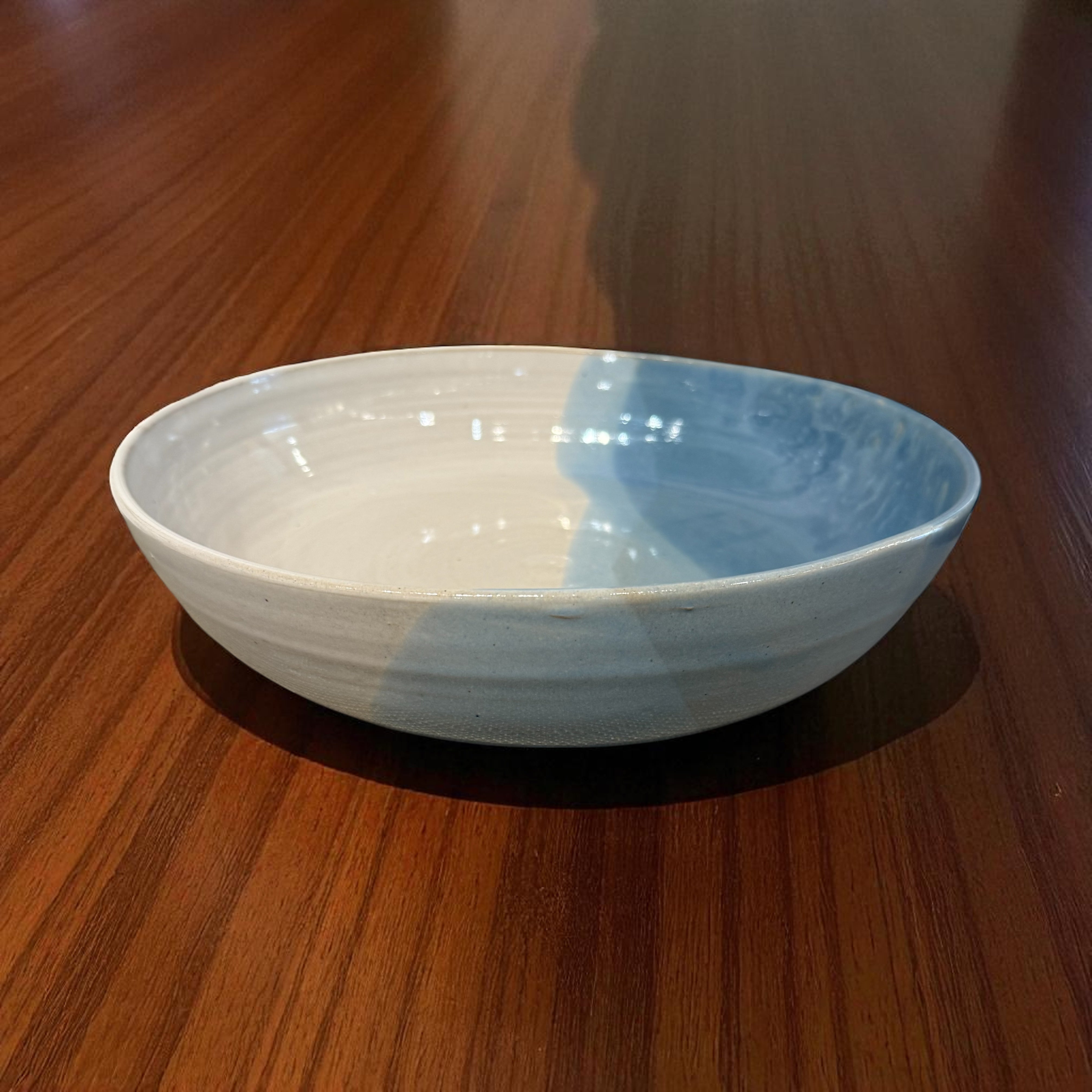 Bring elegance to your table with these beautifully handcrafted, wide and deep ceramic bowl-like plates. Perfectly designed for serving salads, grain bowls, proteins with sauces, or any culinary creation, these deep plates combine functionality and style. Each piece is skillfully wheel-thrown from durable stoneware clay, hand-carved for a unique design, and glazed in a bright, vibrant white to suit any modern or minimalist kitchen.