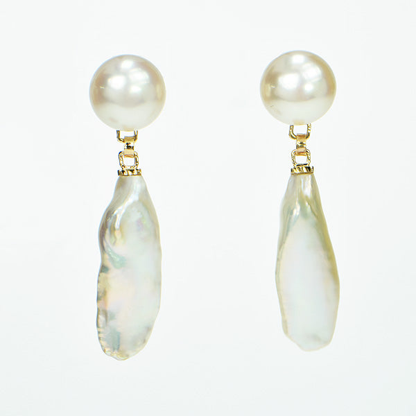 Freeform and Pearl Button Earrings