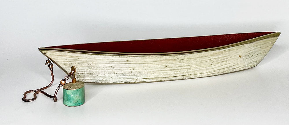 Each bronze dory is sand cast from Jack's welded bronze original.  In my studio,
