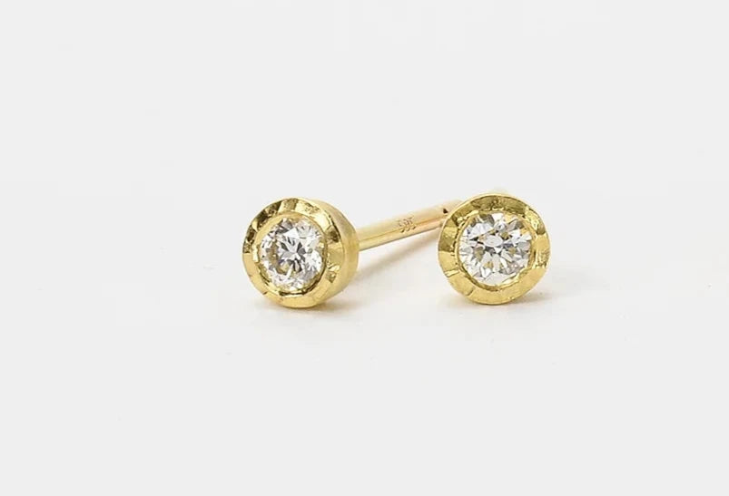The single diamond studs were my first answer to “I can’t find earrings to go with your necklaces.” They have the same unique hammer texture and are made of ring quality stones that have a higher color and clarity grading than standard studs; making them even more brilliant. Sold in pairs or individually.