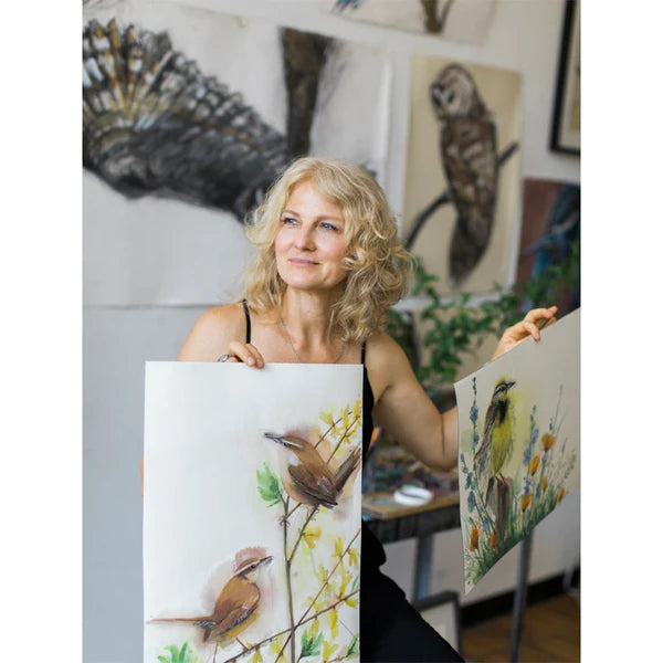 Hiking, camping, and fishing the forests, jungles, deserts, and waters of four continents have greatly informed how I compose my visual conversations between nature and the viewer. Birds use their voices, talons, and feathers, showing human-like traits of emotion and intelligence. My paintings celebrate that we are kindred spirits with the creatures of nature.
