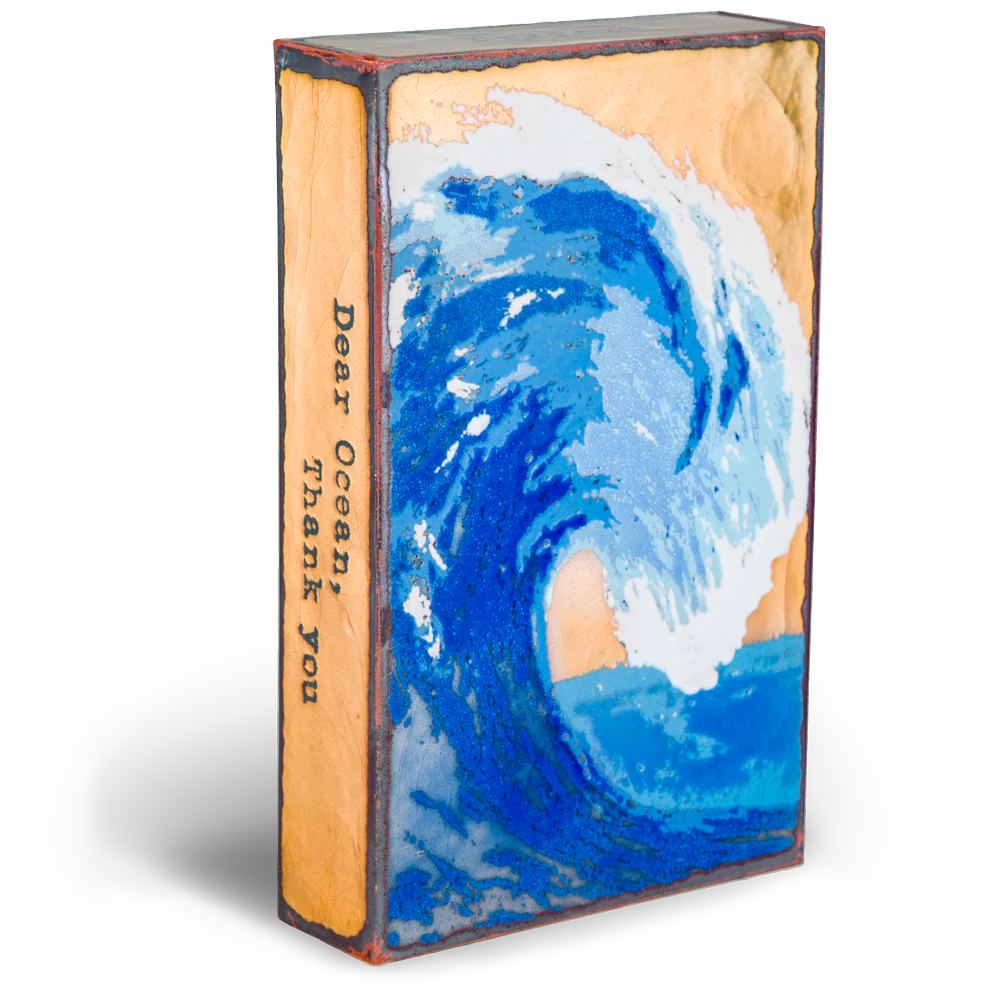 Houston's spiritiles capture the spirit of the enlightened moment, and share that moment of light with the world. The stories borne on their golden sides are timeless words of wit and wisdom...those AHA! moments of life. Spiritiles are hand painted on copper in finely ground glass, then fired by kiln at 1500 degrees. It's like drawing with sand, Houston says, then toasting it on a very hot fire.
