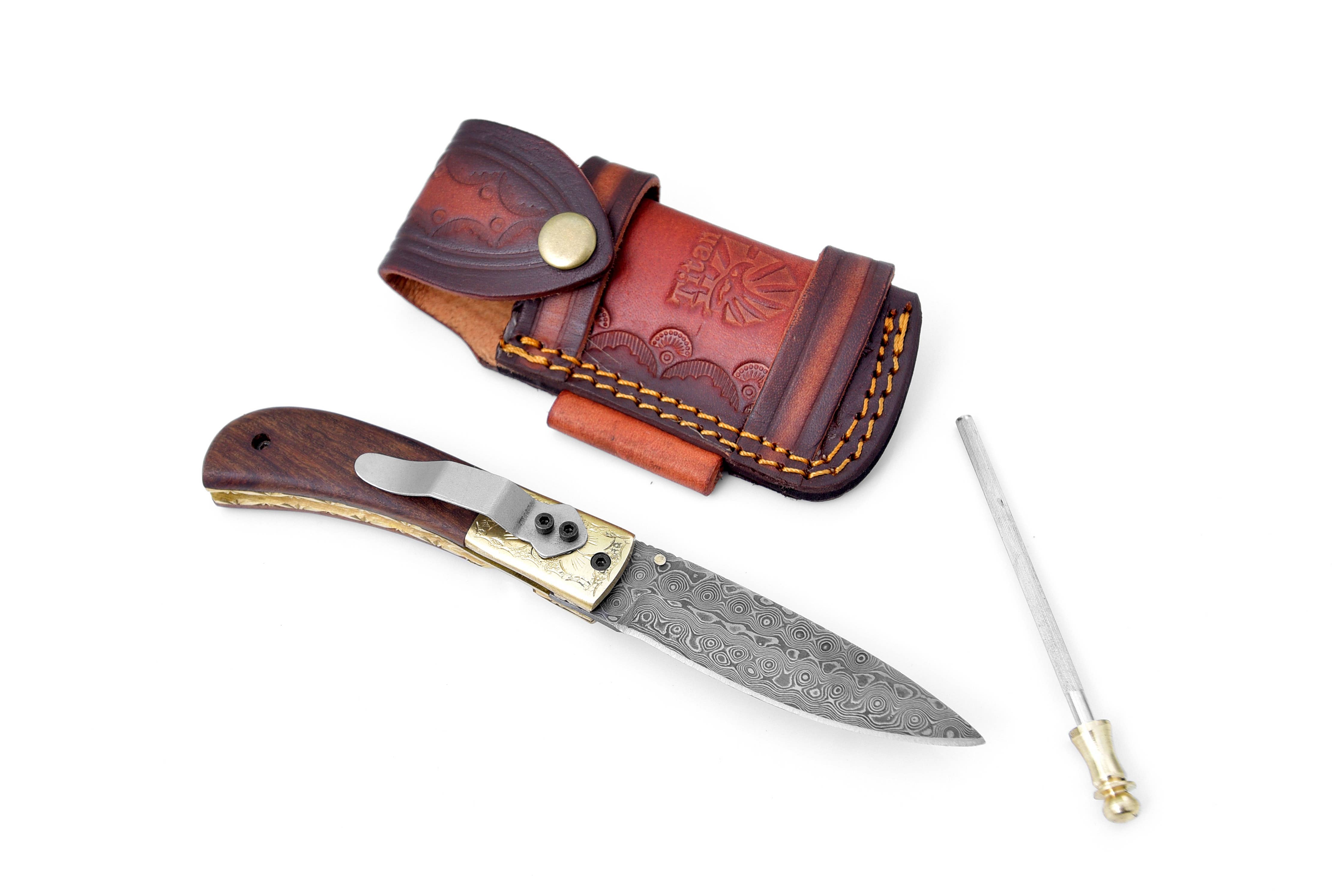 Designed for both functionality and aesthetic appeal, the engraved bolster enhances the knife's overall sophistication. The fine craftsmanship of Titan International Knives is evident in every detail, making this pocket knife a unique and distinguished accessory for enthusiasts and collectors alike.